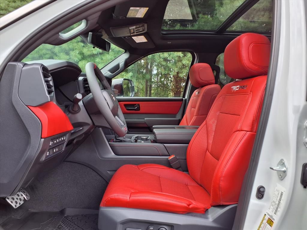 - TRD Pro SofTex®-trimmed seats with contrast stitching and technical-camo-pattern inserts; 8-way power-adjustable driver and front passenger seats with power-adjustable lumbar support